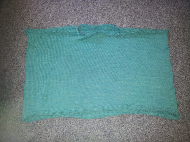 Es fehlen noch die Ärmel und den Kragen muss ich natürlich noch fertigstricken. Dann darf er baden - und, wenn das Wetter so ist, wie es in dieser Jahreszeit sein soll, kann ich ihn vorerst mal nicht tragen.